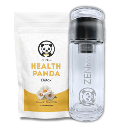 Τσάι αποτοξίνωσης και μπουκάλι με σουρωτήρι