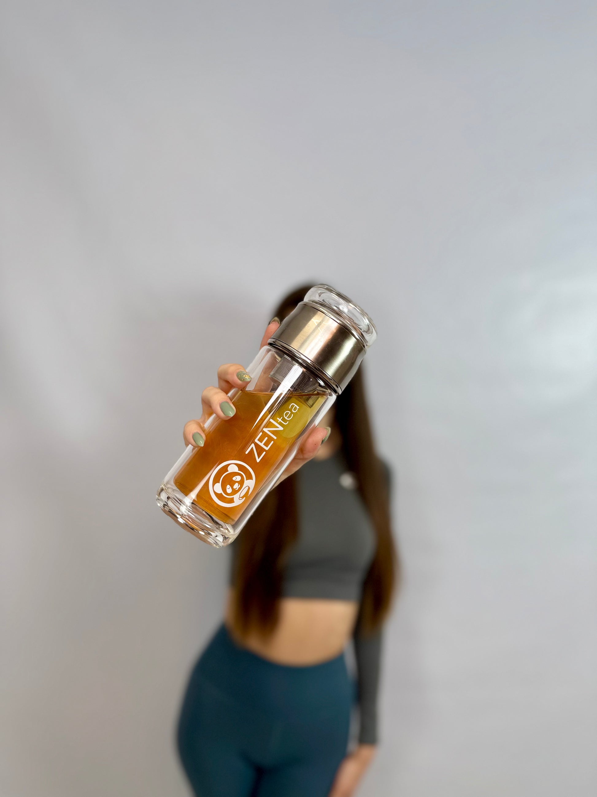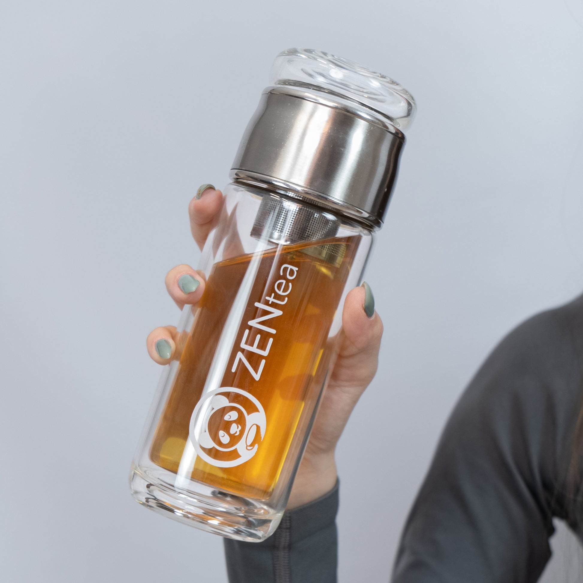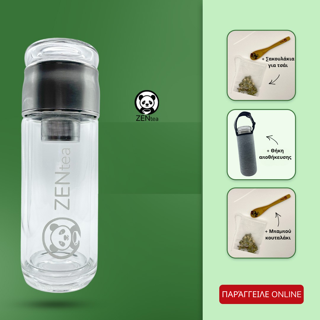 🚰 Μπουκάλι τσαγιού – με διπλό καπάκι, λεπτό σουρωτήρι και διπλό γυαλί
